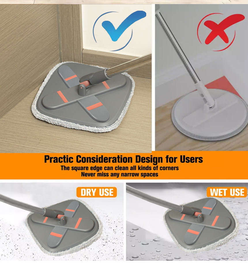 Microfiber Pole Plus Mop with Telescopic Handle Rectangular and Triangular Pattern for Home Use Pack of Various Sizes