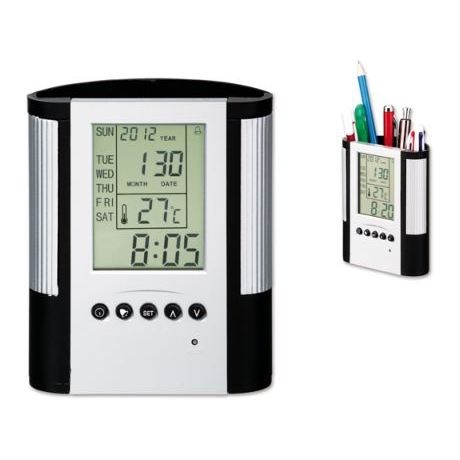 Custom Logo Modern Office Desk with Digital Clock Projection Calendar & Children's Electronic Radio Stop Watch Features Included
