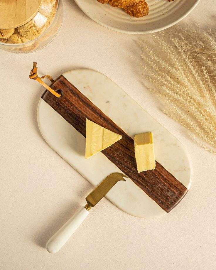 HOLDIG Stainless Steel Besafe Decorative Marble and Acacia Wood Cutting Board Marble Cheese Serving Board with Handle