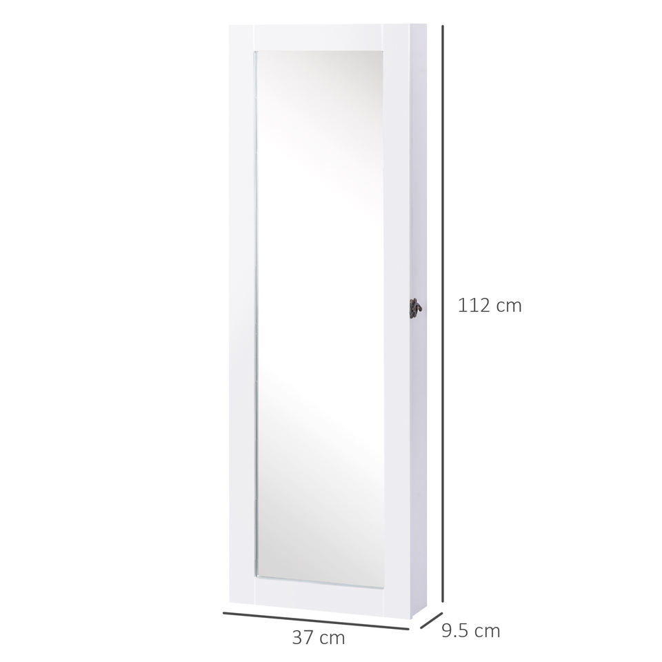 HOMCOM Wall Mounted Jewellery Cabinet with Hooks and Wooden Compartments, Mirrored Jewellery Cabinet for Earrings, Necklaces and