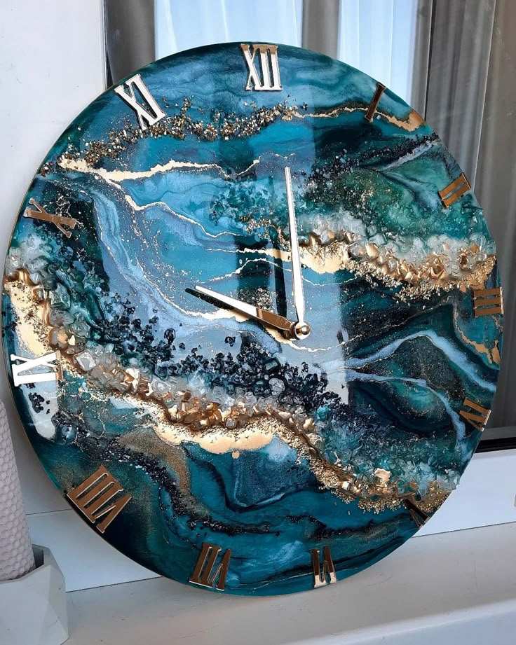 HOME ASSISTANT Resin Wall Clock Epoxy Resin Customized Size Modern Design Battery Operated Wedding Home Decor Handmade Luxury