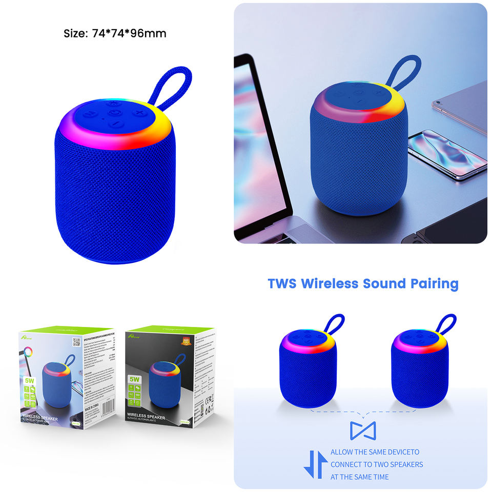 HOME Digitalome KMS-M21-A 5W Wireless Portable TWS Bluetooth Speaker with LED RGB Lighting for Outdoor and Home Use