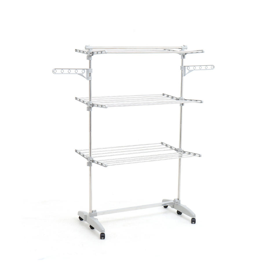 Foldable structure, 6 tier vertical design, Large drying capacity, Rolling wheels with lock, Space saving storage, Stable metal frame, Easy to move and use