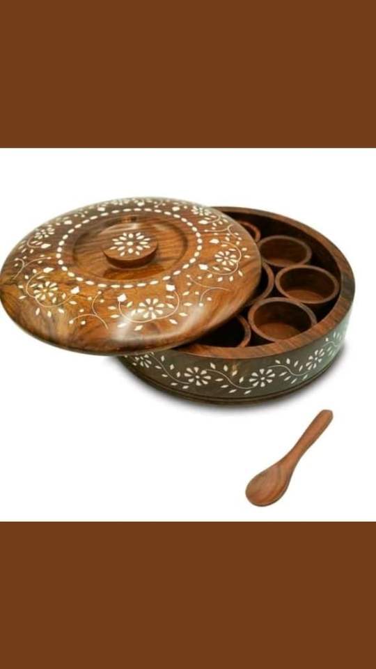 HOME NATURAL WOODEN Premium Printed Home Wooden Tabletop Spice Box With Separate Compartments for Spices and Dry Fruit Box