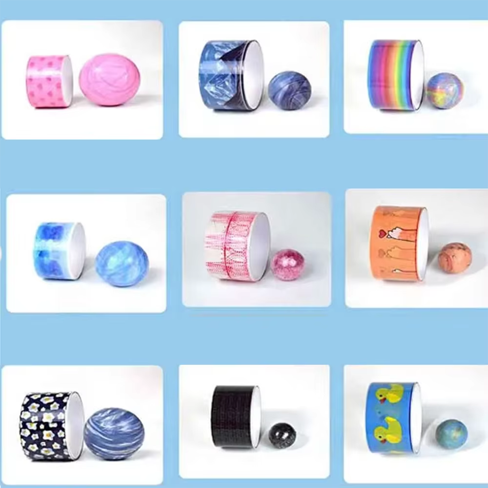 HONGFU DIY Stress Relief Sticky Ball Tape Colorful Single Sided PET Adhesive Fidget Toys for Sensory Play Christmas Party Favors