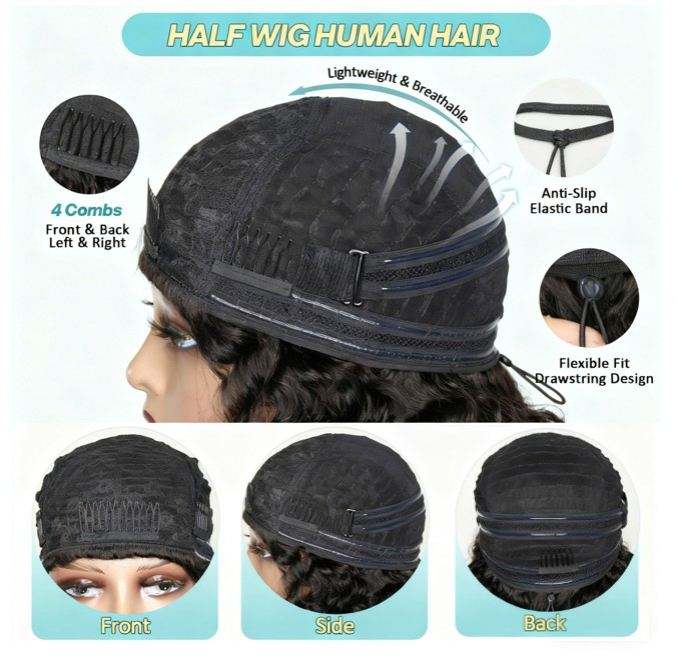 Amygirl HOT Double Drawn Raw Machine Made None Lace Vietnamese 100% Remy Human Hair Curly Afro Kink Half Wig 180% Density Black