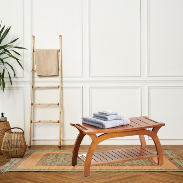 HOT SALE Bamboo Bath Chair Stool with Storage Shelf Durable Bath Spa Organizer Bench From Indonesia