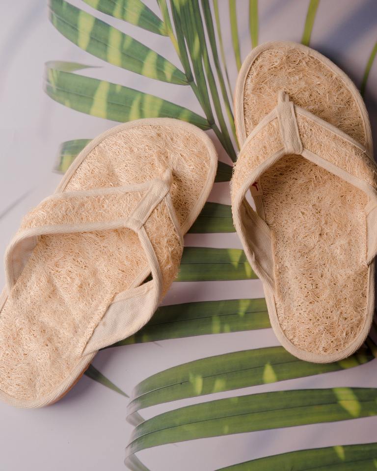 HOT SALE Blue Lotus 2025 ECO FRIENDLY NATURAL LOOFAH SLIPPERS you can wear Anytime Anywhere