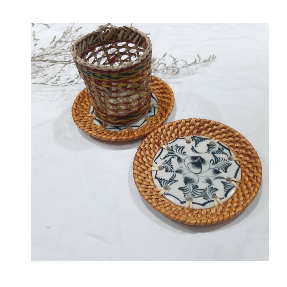 HOT SELLING 2020 RATTAN TEA COASTER - RATTAN and CERAMIC COAASTER- CERAMIC COASTER - WICKER TABLE MAT