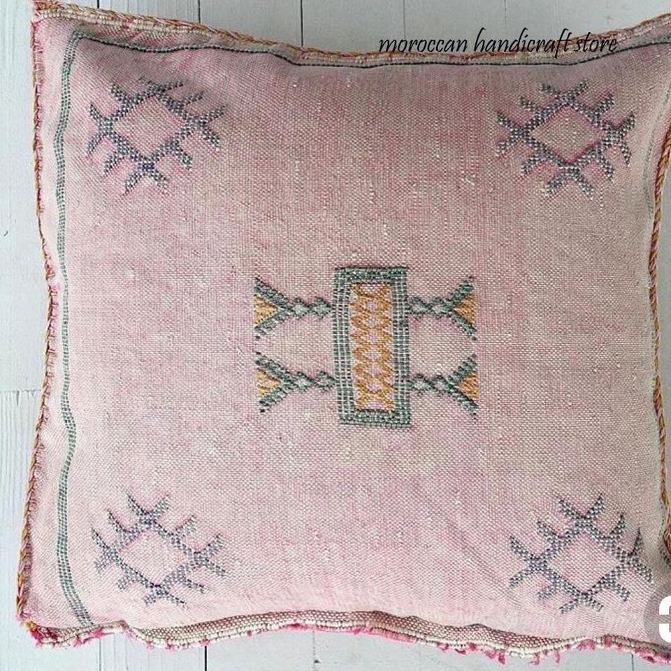 Hot-Selling Handmade Agave Cactus Pillow Cushion Cover 50x50 Square Geometric Pattern Plain Style Customizable Made in Morocco
