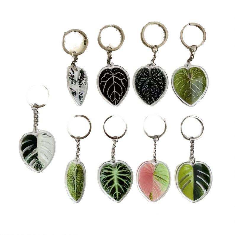 HOT Selling Popular Plastic Key Chain Transparent Monstera Green Palm Leaf Acrylic Keychain
