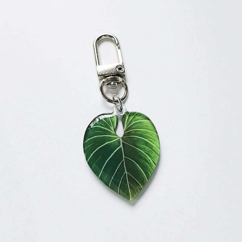 HOT Selling Popular Plastic Key Chain Transparent Monstera Green Palm Leaf Acrylic Keychain
