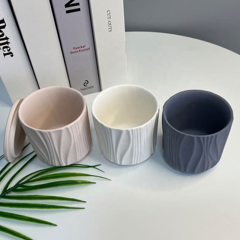 HOT Selling Sample Matte Ceramic Embossed Wavy Container Empty Candle Jars Without Lid