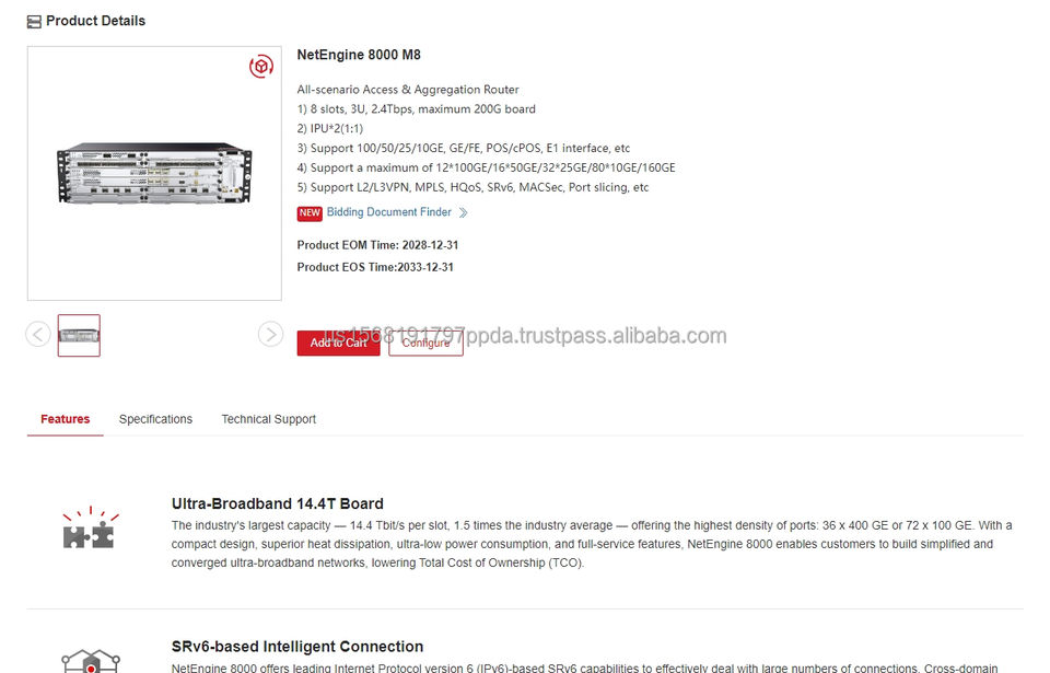 HPV CR8DM8UP1TC1 NetEngine 8000 M8 480G Upgrade to 1T2 RTU(per IPU) Telecom Parts