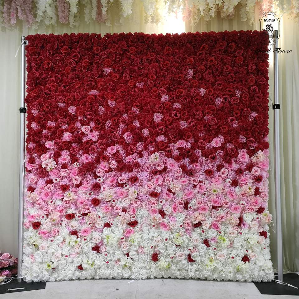 HQ035 Wholesale Cheap Wedding Decor Blush Light Pink Red White 3D Artificial Silk Hydrangea Peony Rose Flower Wall Backdrop