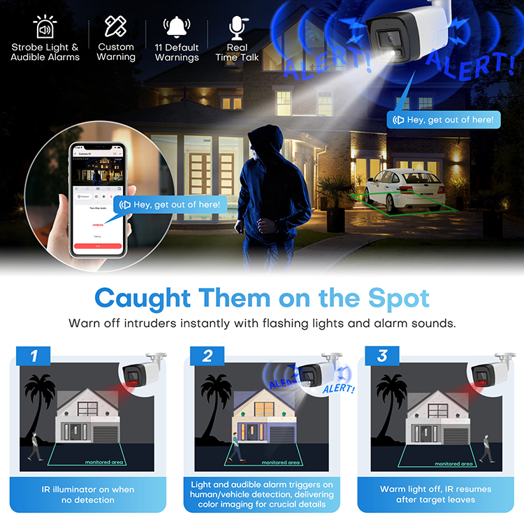 Feature:Strobe Light and Audio alarm,Smart Hybird Light,Motion Detection