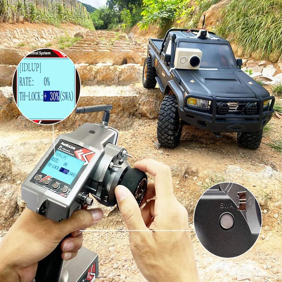 HTLNUZD Radiolink RC6GS V3 7-Channel 2.4GHz RC Transmitter for RC Cars Integrated R7FG Gyro RX Volt Telemetry Dual Mix Receiver