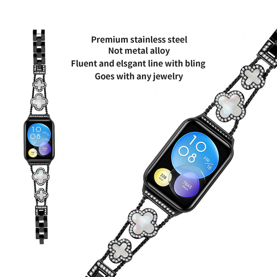 HUANLONG Clover Watch Metal Band for Xiaomi Mi Band 9 Pro 8 Pro for Redmi Watch 4 Watch Band Moissanite Diamond Strap