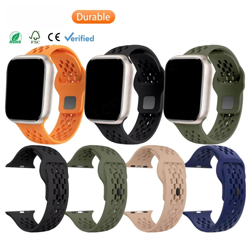 HUANLONG Luxury 44/45/49mm Sport Men Silicone Sport Soft Breathable for Apple Ultra 2 1 Series 7 8 9 10 SE Iwatch 11 Watch Bands