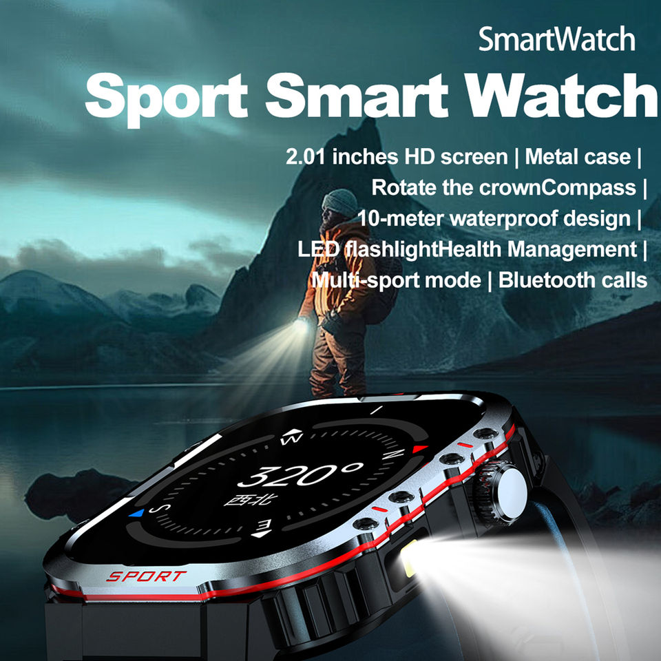 HUANLONG Outdoor Reloj G45 Smart Watches Sport 2.01inch LED Flashlight Compass 1ATM Swim Waterproof Fitness Men G45 Smartwatch