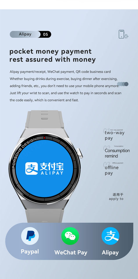 Calendar, Alarm Clock, Remote Control, Sleep Tracker, Speed Measurement, Fitness Tracker, Passometer, Call Reminder, Answer Call, Push Message, Mood Tracker, Altitude Meter, Heart Rate Tracker, Payment, WORLD TIME, Calculators, Interactive Musicfunction