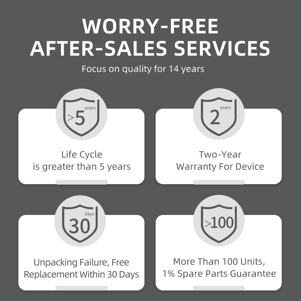 Call Center and on-line Technical Support, Onsite Training and Inspection, Free Spare Parts, Return and Replacement, Repair