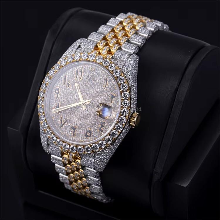 HUMERA JEWELS Luxury Handmade Fully Iced Diamond Hip Hop Watches VVS Moissanite Glass Dial Window Automatic Movement Hidden