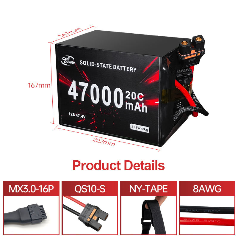 Nominal Voltage:3.95V/1S 11.85V/3S 23.7V/6S 47.4V/12S