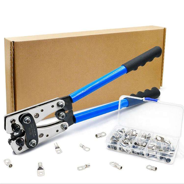 HX-50B AWG10-1/0 Heavy Duty Non-insulated Battery SC 60PCS Set Cable Wire Lug Terminals Connector Crimping Hand Tool Pliers Kit