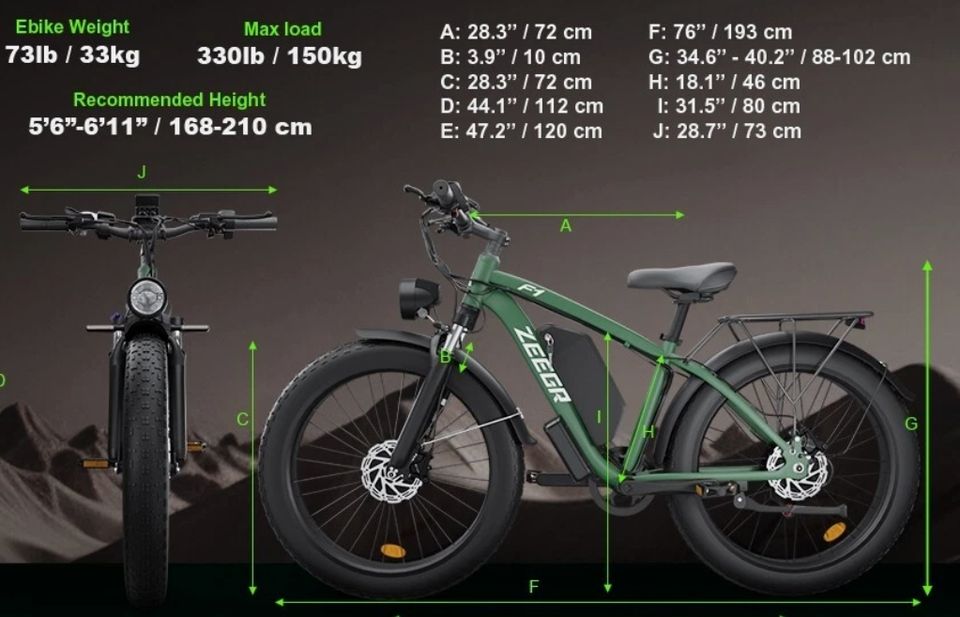 (HY) Electric Bike 26" Fat Tires 36MPH Dual Motor Bike