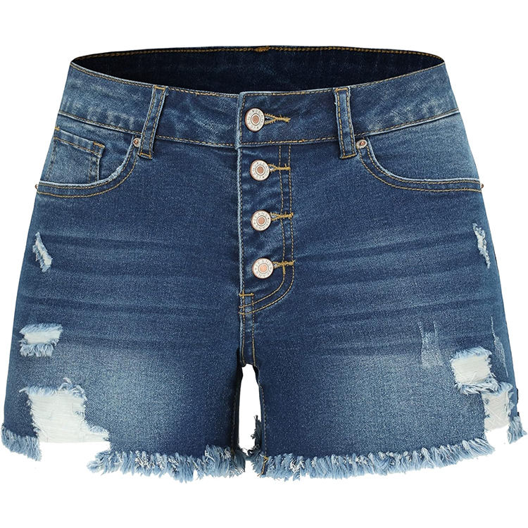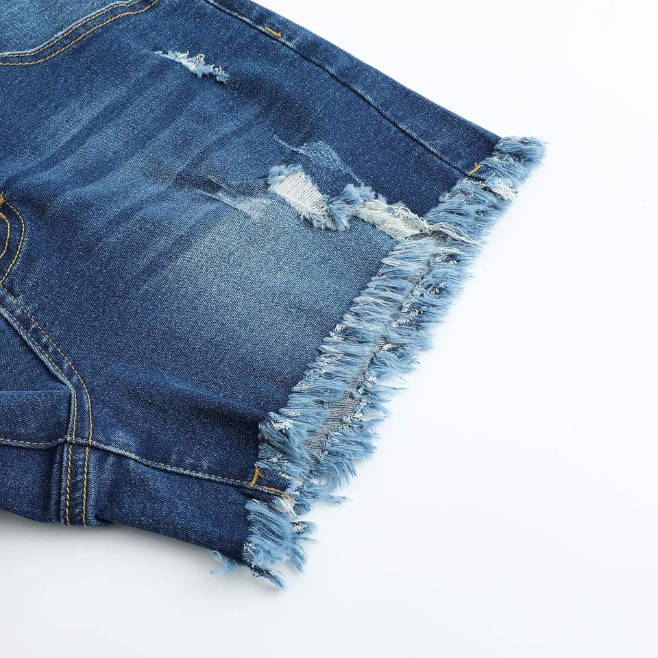 HYT Women Mid Rise Ripped Stretchy Jeans Shorts Women's Frayed Raw Hem Casual Denim Shorts Denim Shorts for Ladies