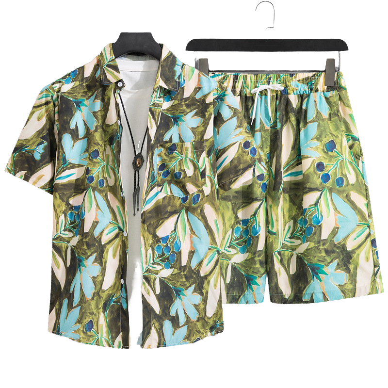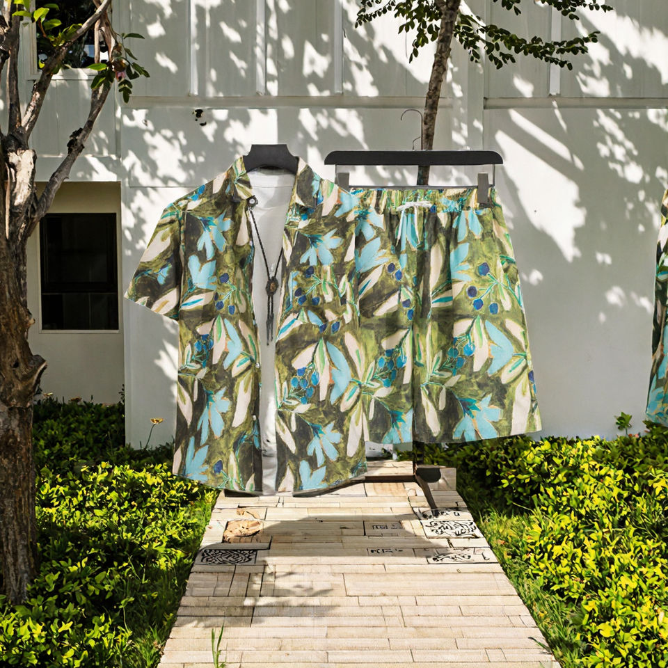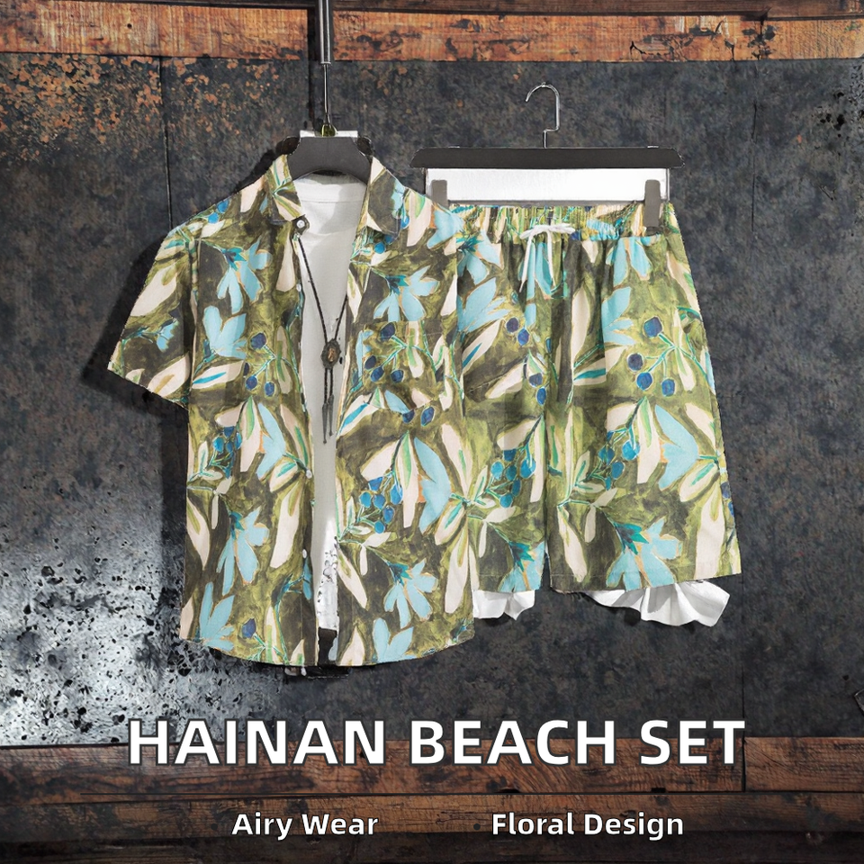 Hainan Island Beach Shirt Set for Men Sanya Travel Hawaii Floral Printed Shorts Plus Size Casual Summer Clothing Breathable