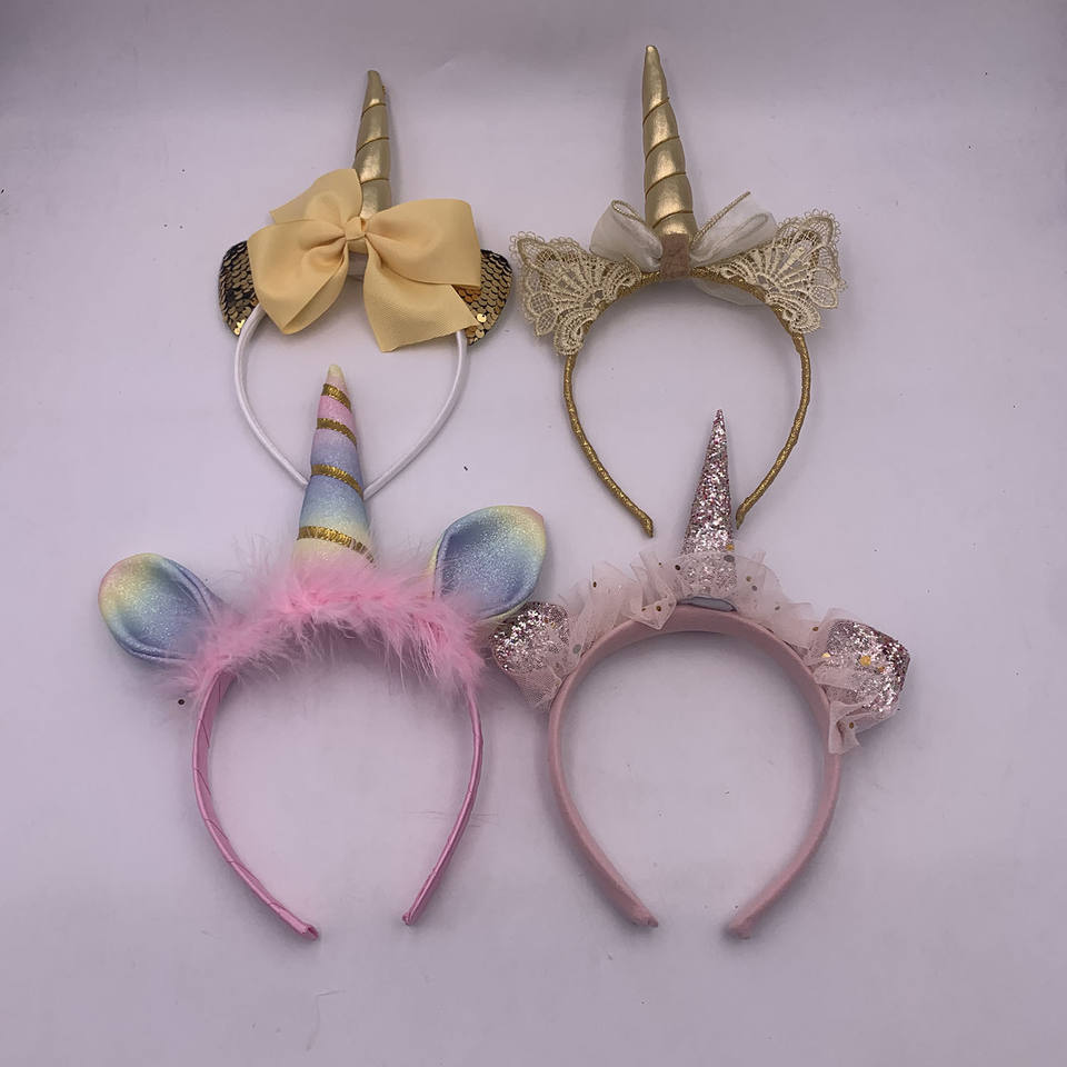 Hair Clip Children's Accessories Gold Bow Rainbow Unicorn Headband