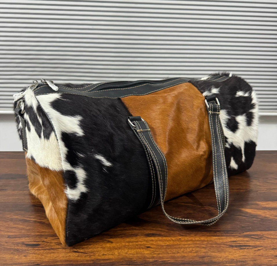 Hair Cowhide Leather Duffle Bag Genuine Leather Fashion Zipper Portable Travel Bag Vintage Weekend Large Capacity Carry