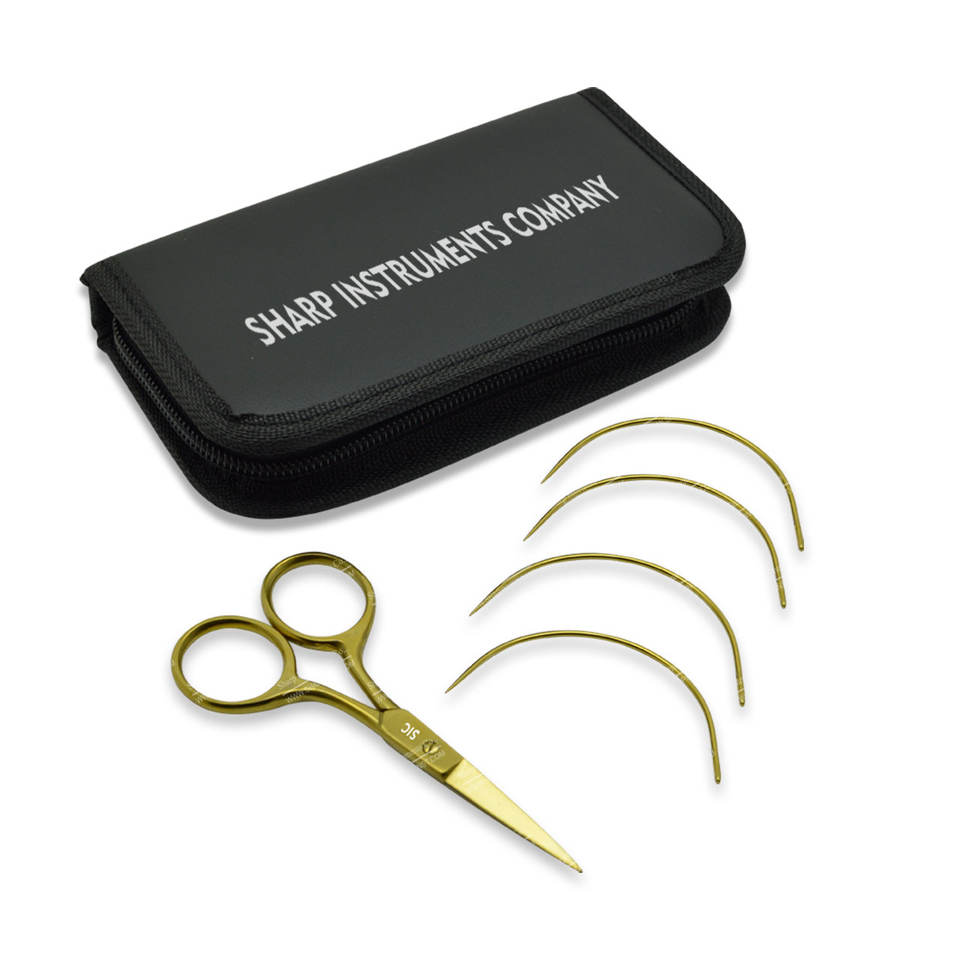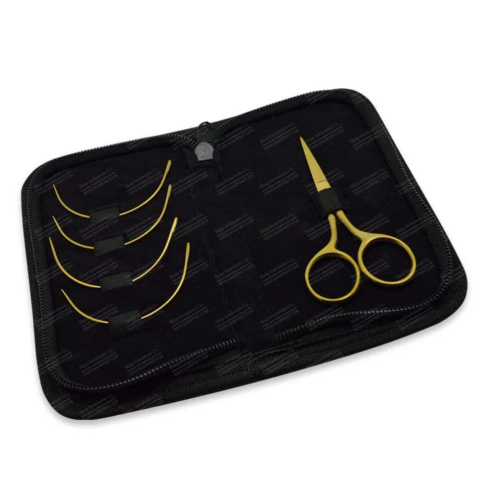 Gold Plated Stainless Steel Hair Extension Tools Including Needles and Embroidery Scissors