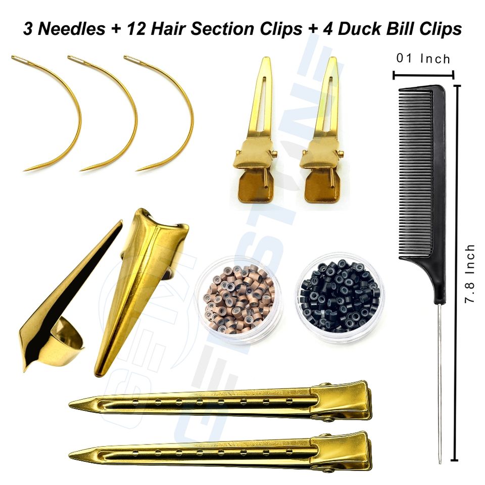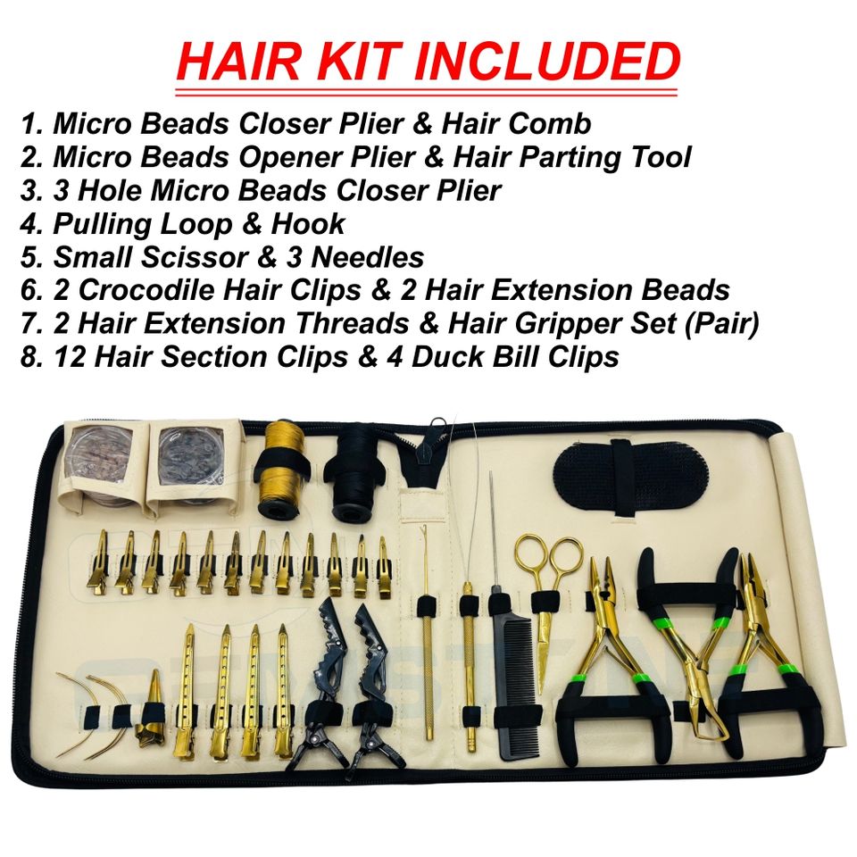 Hair Extension Tool Kit Set – Micro Beads Pliers Loop Hook Section Clips Thread & Complete Hair Extension Accessories Kit