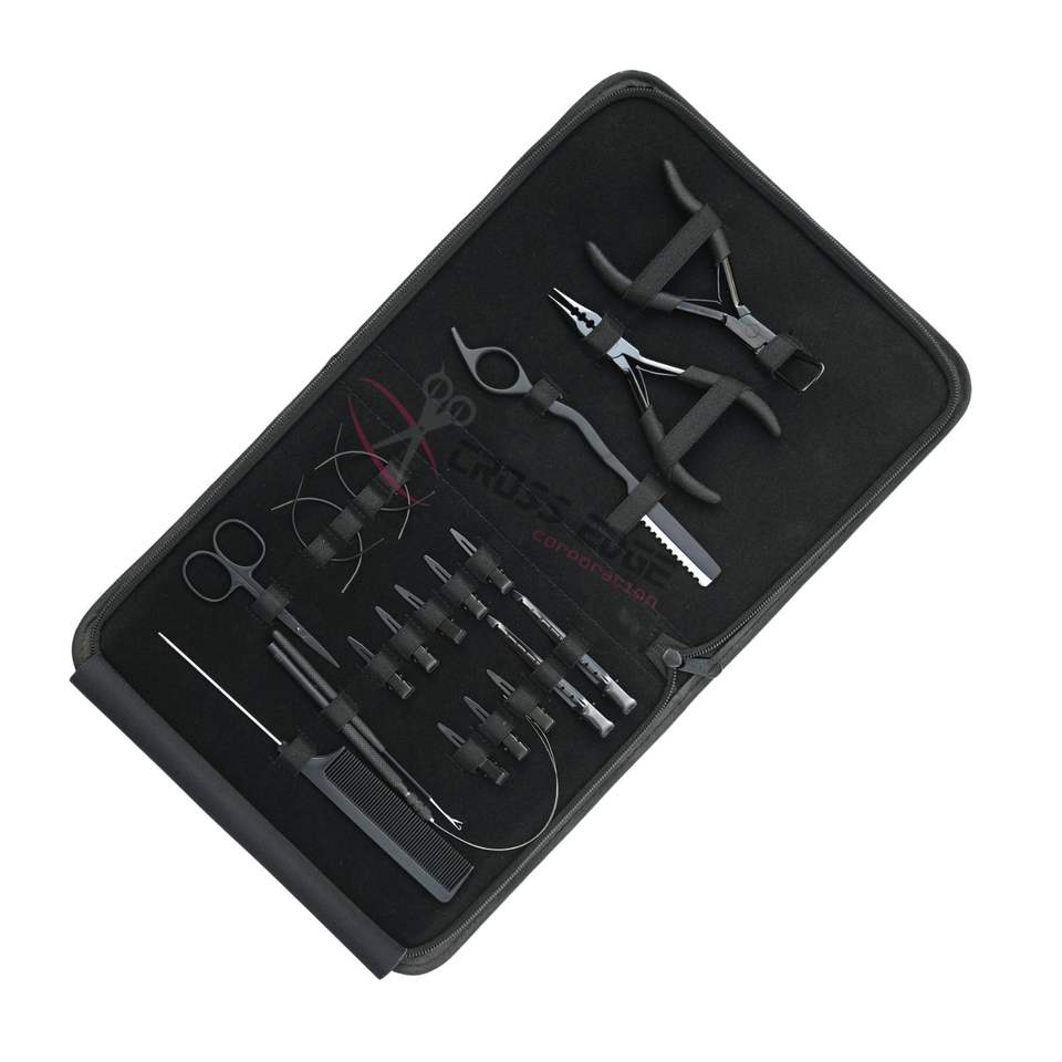 Hair Extension Tools Kit Pulling Loop Hair Hook Sectioning Clips Microbeads Crimping Plier Rat Tail Comb Sharpe Razor Scissor