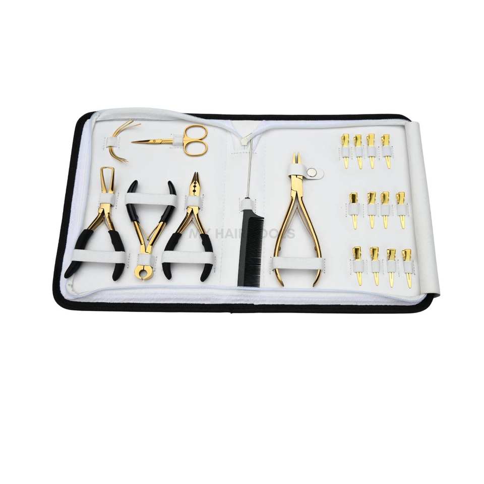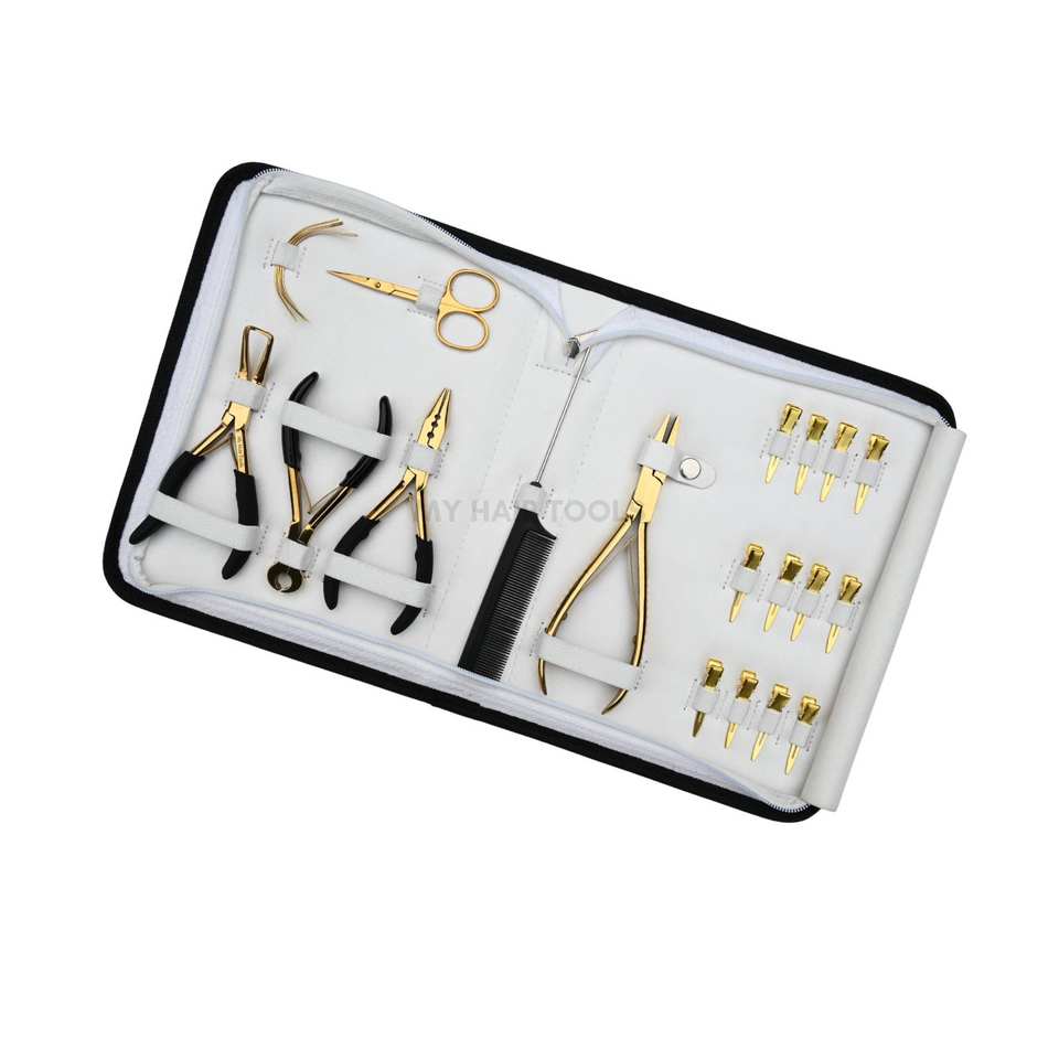Hair Extension tools Weaving & Styling Kit Heavy-Duty Flat Crimper Microbead Opening Pliers Swing Needles Mini Scissors & Clip