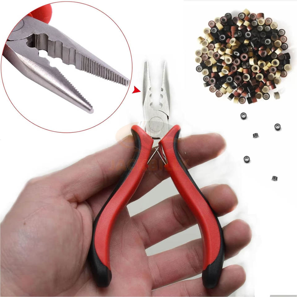 Hair Extensions Pliers with 3 Holes - Mini Hair Pliers for Micro Nano Ring Hair Extensions Opener and Removal Tool Red