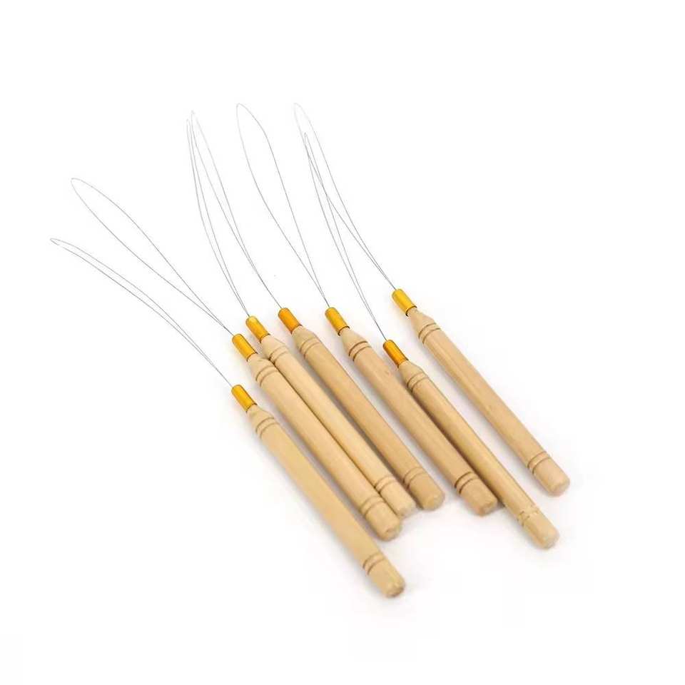 Hair Extensions Tool Braid Loop Threader Wooden Handle Micro Rings Beads Links Hair Extension Tools Loop Weaving Needles
