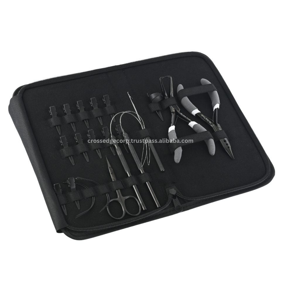 Hair Extensions Tools Crimper Plier Hair Tape Remover Pulling bead threader for hair Loop Crochet Hook 4pcs Curve Needle
