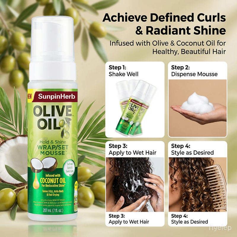 Hair Foaming Mousse for Wrap Set Styling with Olive Oil and Coconut Oil Provides Hold Shine and Frizz Control