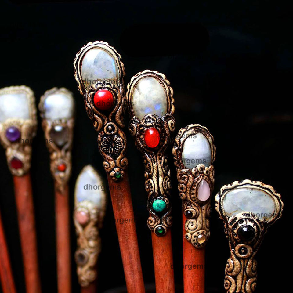 Gemstone:Moonstone Polymer Clay Hair Stick
