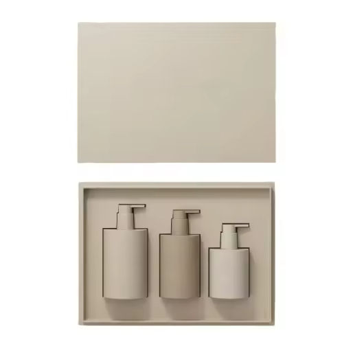 Hair Oil Packaging Bottle Set 250ml 350ml 450ml Beige Plastic Shampoo Lotion Pump Bottle Set with Box Packaging for Luxury Cream