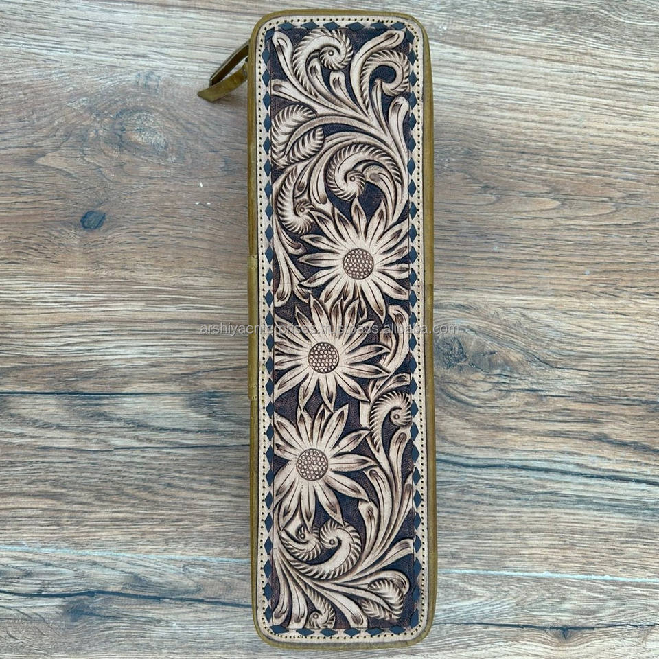 Hair on & Hand Tooled Leather Heat Resistant Leather Curling Iron Travel Case Cowhide Leather Perfect Organizer for Hair Tools