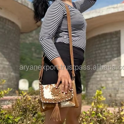 Hair on Hide Cowhide Leather Handbag Unique Style Bohemian Sling Purse Multi Purpose Women Sling Bag Crossbody Shoulder Handbags