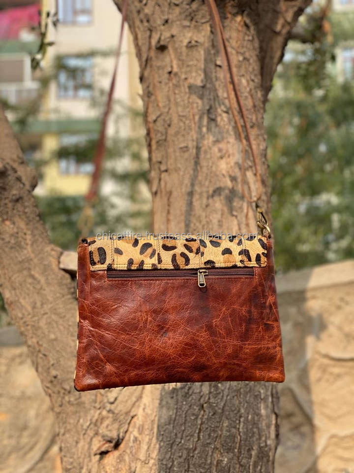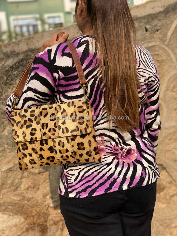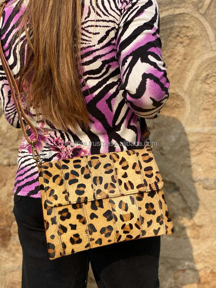 Hair on Leopard Print Cowhide Leather Handbag Western Luxury Genuine Leather Multi Uses Patches Crossbody Shoulder Bag for Women