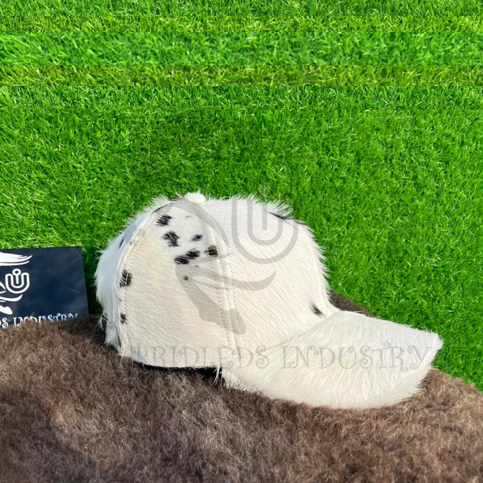 HairOn Natural Black Spot White Cowhide Leather Premium 6-Panel Casual Cap Breathable Waterproof Fabric Adjustable Performance
