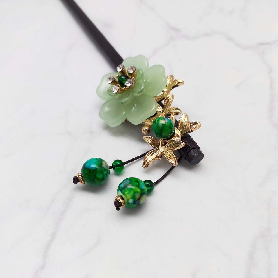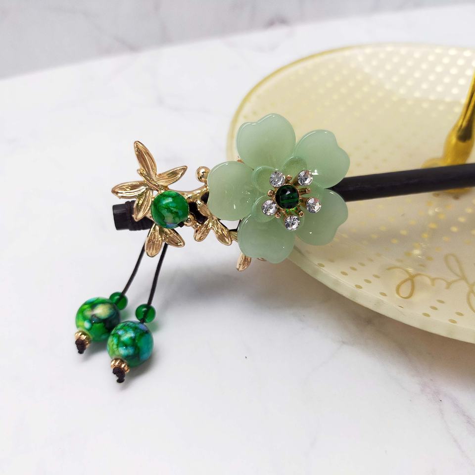 Hairpin 18cm L Plastic & Wood Made Timeless Beads Tassel Hair Accessory-High Quality Timeless Charm Elegant