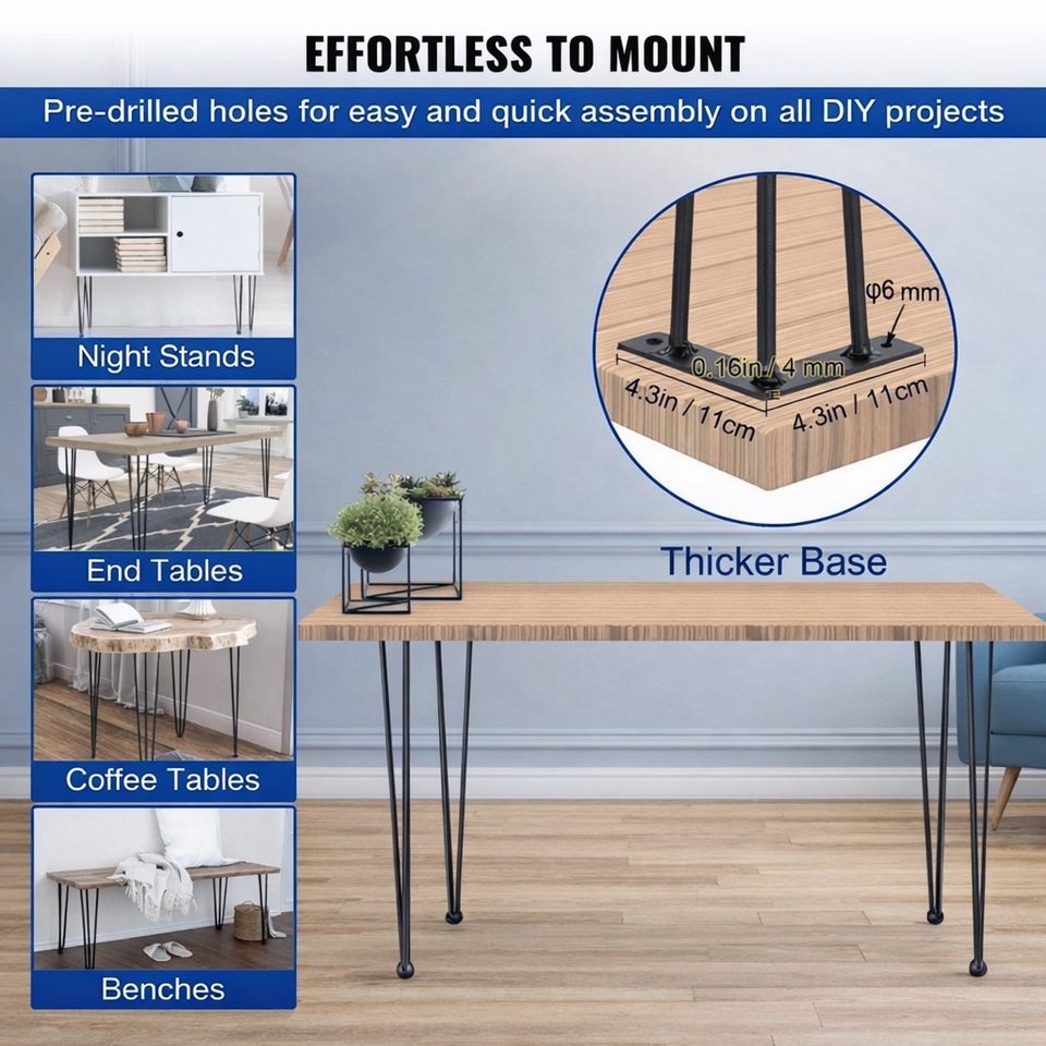 Hairpin Table Legs 22" 3 Robs 4pcs 880lbs Load Capacity Black Heavy Duty Stainless Steel Modern DIY Dining Desk EDPTBL023